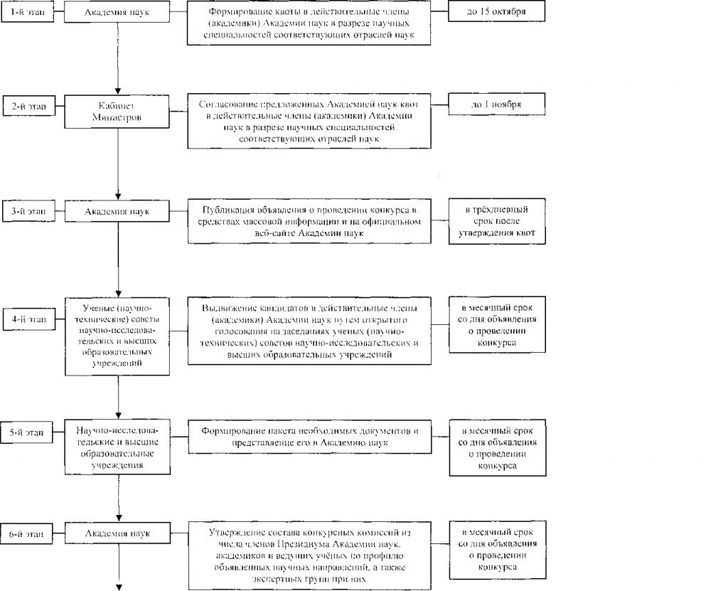 - Конкурсный отбор и утверждение действительных членов (академиков) Академии наук осуществляются по схеме согласно приложению №1 к настоящему Положению.