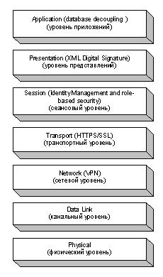 Рисунок 6 показывает внедрение механизмов безопасности, выполненное на всех уровнях коммуникации и обработки данных.