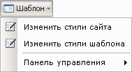 - Редактировать шаблон: изменить стили сайта и стили шаблона можно в форме из публичной части, а для перехода к полному редактированию шаблона имеются ссылки в нужный раздел панели управления.