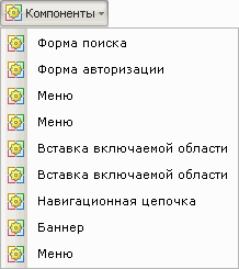 - другие действия. Их набор зависит от специфики данного компонента. Например, для компонента меню доступны такие действия: