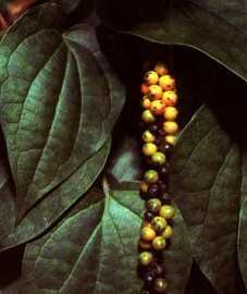 Ботаническое описание. Лазящий кустарник с большими длинночерешковыми темно-зелеными листьями и колосовидным соцветием. Распространившись из лесов Малабарского берега в Передней Индии, перец сейчас выращивается в большинстве тропических областей.