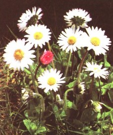 Ботаническое описание. Это часто встречающееся растение вряд ли нуждается в подробном описании, так как большинству читателей оно известно как цветок для плетения венков еще с детского возраста. Маргаритка образует розетку листьев, из которой вырастает короткий (до 10 см) безлистный цветонос. На его верхушке сидит одиночная корзинка с белыми язычковыми цветками (по краям снизу они обычно красноватые) и желтыми трубчатыми в центральной части. На солнечном свету корзинки широко раскрываются, ночью и при дожде закрываются и поникают. Цветет с первых весенних дней до глубокой осени. Поля, луга, сады и обочины дорог - излюбленные местообитания маргаритки, которая особенно тяготеет к глинистым почвам.