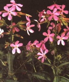 Целебное действие и применение. Мыльнянка является сырьем, содержащим сапонины и, следовательно, пригодным для разжижения густой бронхиальной слизи. Ее применяют при кашле и болезнях бронхов, но значительно реже, чем другие сапонинсодержа-щие растения (коровяк, первоцвет). Мыльнянка также оказывает легкое мочегонное и слабительное действие, поэтому иногда входит в состав так называемого кровоочистительного сбора. Ранее отвар мыльнянки часто использовался при кожных заболеваниях в виде компресса. Он может быть рекомендован и сегодня, так как подтверждено противогрибковое действие сапонинов мыльнянки. Государственная служба здравоохранения Германии поддерживает такое применение. o Чай из мыльнянки: 1 с верхом чайную ложку травы и корневищ мыльнянки заливают 1/4 л холодной воды и несколько часов настаивают. Потом настой доводят до кипения и отжимают. При кашле пить еледует 2 чашки в день. Для кожных обмываний и компрессов необходимо разбавить этот настой равным количеством чая ромашки.