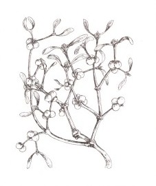Используемые части: облиственные ветки. Аптечное наименование: трава омелы - Visci heiba (ранее: Herba Visci albi).