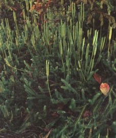 Ботаническое описание. Стелющиеся по почве и густо усаженные мелкими, с бесцветным волоском на конце листочками стебли плауна так сильно ветвятся, что порой образуют сплошной ковер. Приподнимающиеся на 10-15 см веточки вильчато разветвляются, образуя на концах бархатистые на ощупь цилиндрические спороносные колоски, которые несут не смачивающиеся водой споры. Эти споры и являются аптекарским товаром. Они созревают в июле-августе. Обычное для Европы растение, плаун предпочитает сухие пустоши и болота, горные луга и хвойные леса. В Германии сбор плауна запрещен. Аптекарский товар приходит из Восточной Европы и Китая.