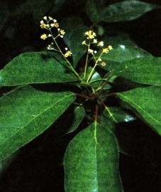 Ботаническое описание. Мощные камфорные деревья в дикорастущем состоянии встречаются в Южном Китае, Южной Японии и на Тайване; на Цейлоне и в Восточной Африке их успешно выращивают. Дерево достигает 40 м в высоту и 5 м в диаметре, ствол коряво разветвленный. Листья удлиненно-эллиптические (до 13 см), с 3 жилками. Невзрачные зеленовато-желтые цветки собраны в рыхлые малоцветковые метелки на длинной ножке. Плоды пурпурно-черные, окружены бокальчатым цветоложем.